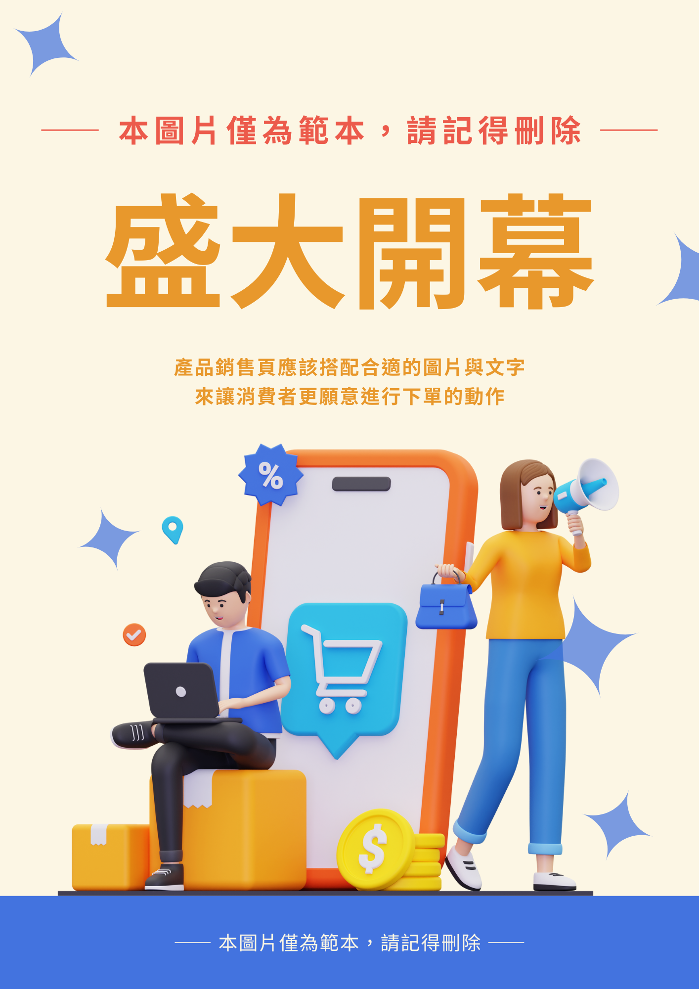 特價中 🔍 簡單商品範例 (熱門 – 無圖庫)NT$999 原始價格:NT$999。NT$699目前價格:NT$699。 這是一款展示用的範例商品,為展示電子商城內容而設計,展示如何進行清晰簡單的商品描述,並且以條列形式說明其主要優點。 商品特色: 高品質材質:採用優質材質製作,保證產品耐用且安全。 實用設計:設計符合現代需求,無論家庭或辦公使用都能發揮出最佳效果。 多功能應用:適合多種場景使用,滿足您的不同需求。 環保選擇:產品製造過程考慮環境影響,使用可持續材料。 時尚外觀:簡約且時尚的外觀設計,適合各種風格空間。 簡單商品範例 (熱門 - 無圖庫) 數量 加入購物車 描述 這邊是你可以放些商品圖片或是文字介紹的區塊 請記得將以下這些內容刪掉換上專屬於你的產品資訊 相關商品 特價中 可變商品範例 (熱門) NT$999 原始價格:NT$999。NT$699目前價格:NT$699。 選擇規格 此產品有多種款式。 可在產品頁面選擇選項 特價中 組合商品範例 (熱門) NT$699 查看商品 特價中 簡單商品範例 (熱門 – 有圖庫) NT$999 原始價格:NT$999。NT$699目前價格:NT$699。 加入購物車 特價中 外部商品範例 (熱門) NT$999 原始價格:NT$999。NT$699目前價格:NT$699。 馬上購買